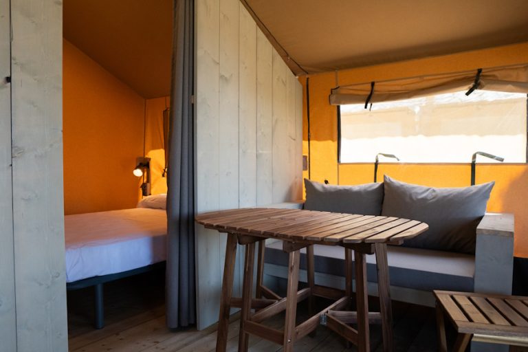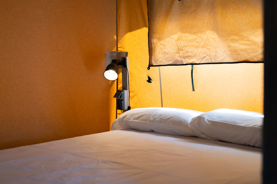 Dit zijn canvas tenten die plaats bieden aan maximaal 4 personen. Ze hebben 2 aparte slaapkamers, één met een tweepersoonsbed en de andere met een stapelbed. Ze hebben ook een keuken-eetkamer en toegang tot openbare badkamers. De keuken is uitgerust met twee fornuizen, een koelkast, een elektrisch koffiezetapparaat en keukengerei, zodat u desgewenst uw eigen maaltijden kunt bereiden.